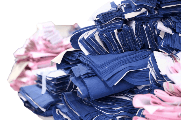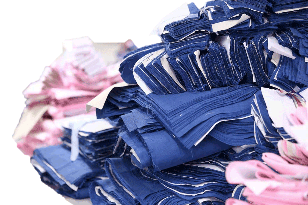 By converting cotton fabric or cotton blended fabric into fibre that can be reused in textile products. Our textile recycling material is generated from pre-consumer cut waste which is fabric by-products.